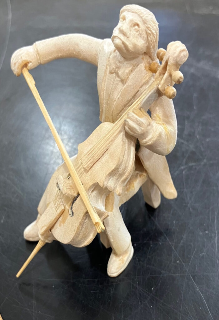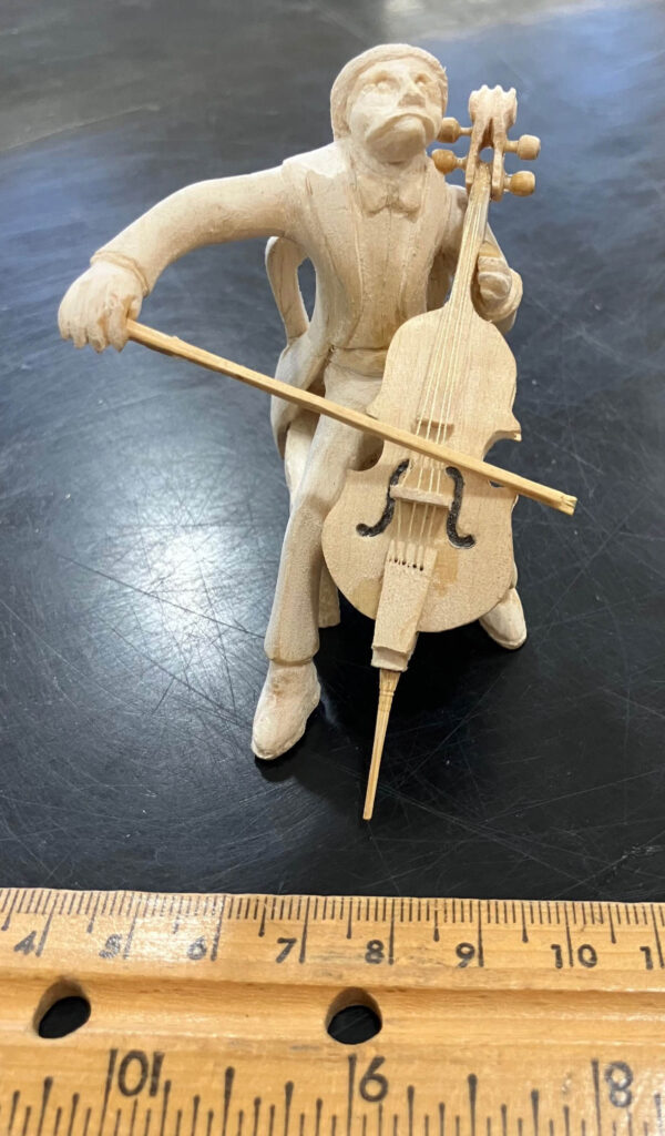 Bob Kehl’s (Left) finished his miniature celloist which is now waiting for finishing. Fits the CCG Judging category “Little People”.